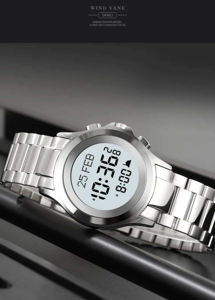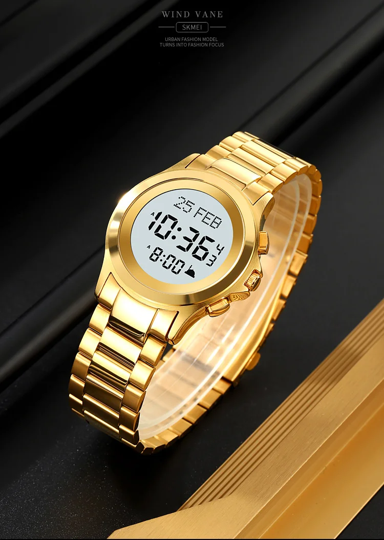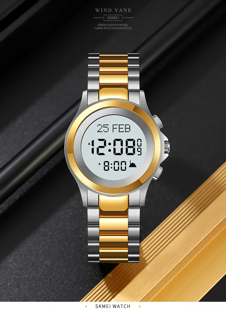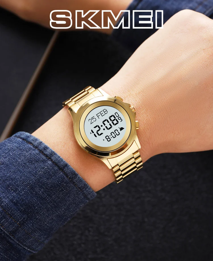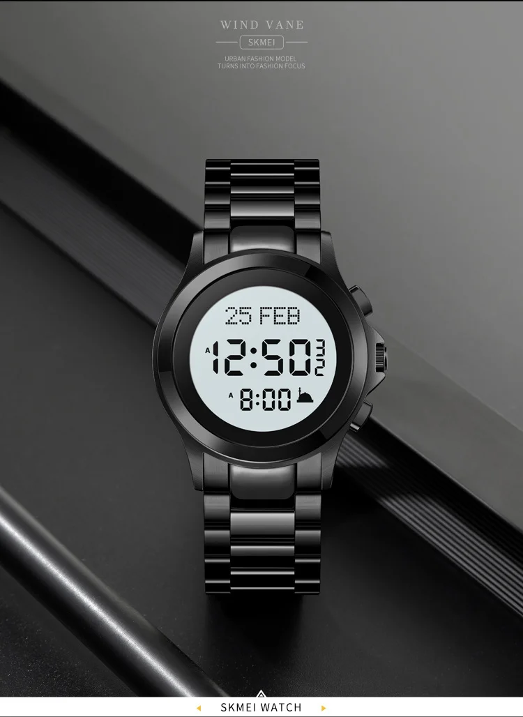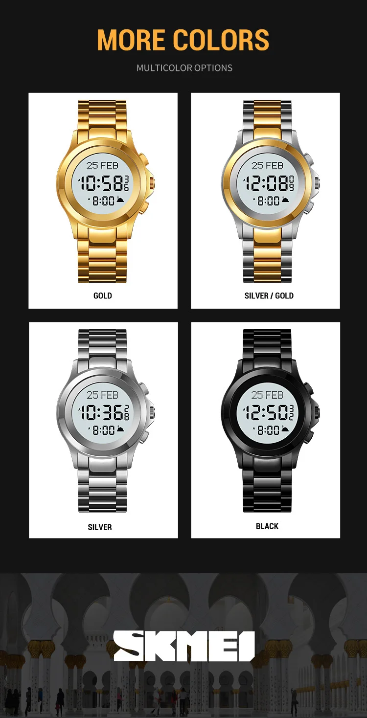 ساعة آزان إسلامية رقمية من SKMEI ، شاشة عرض بإضاءة ليد ، ساعة رياضية ، ساعة هجري للحج ، ساعة بخاصية تحديد اتجاه القبلة